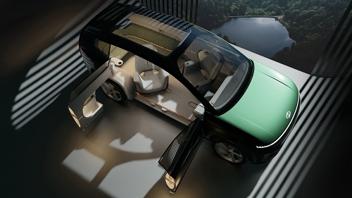 The concept’s vision roof features a panoramic screen that not only displays various content based on passengers’ tastes, but also changes the overall interior atmosphere to guarantee maximum relaxation and pleasure during the journey.