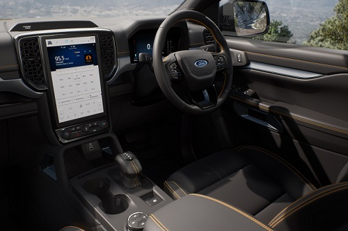 Visually, the next-generation Ranger is bold and confident, with a purposeful exterior that shares Ford’s global truck design DNA. The design features a defined new grille, and signature C‑clamp headlight treatment at the front while a subtle shoulder line down the sides incorporates bolder wheel arches that gives Ranger a sure-footed stance. For the first time, Ford Ranger offers matrix LED headlights. At the back, the taillights are designed in harmony with the signature graphics on the front. Inside, the car‑like cabin steps up, using premium soft‑touch materials, and prominent portrait‑style centre touchscreen with Ford’s signature SYNC™ 4 connectivity and entertainment system. 3