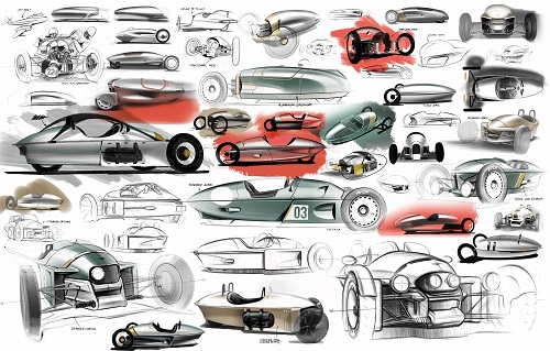 The Morgan Motor Company has showcased the design direction of its all-new three-wheeled model with the release of a series of never-before-seen design sketches. Taken from the drawing boards of Morgan’s design team, the illustrations demonstrate the aesthetic intent of the new model, as well as the inspirations that underpin it.