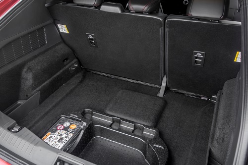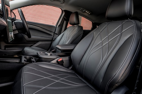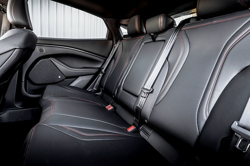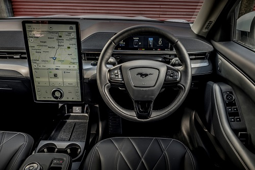 Inside, the Mustang Mach-E was a very civilized experience apart from the plush eight-way powered seating and generous room for five with luggage. The offset split back seats quickly dropped away to more than double the luggage capacity.