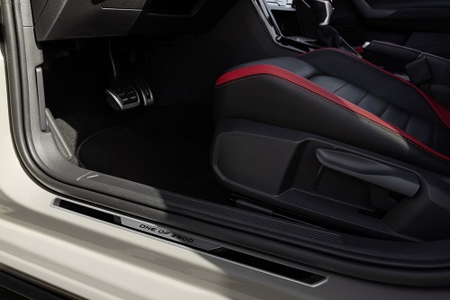 The interior is equipped as standard with premium sport seats in perforated black-red leather, finished with stitched GTI logos, and black gloss decorative trim with red GTI lettering. Owners will be reminded that their vehicles are among a limited number by a ‘One of 2,500’ logo on the sill panel trim.
