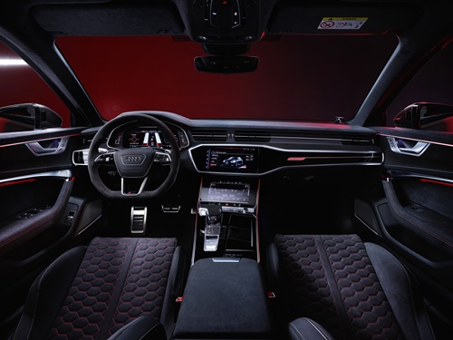 The Audi RS 6 Avant GT is powered by a 4.0-litre TFSI V8 is put to the road via permanent all-wheel drive quattro and has a power output of 630PS and a maximum torque figure of 850Nm. Against the stopwatch, it hits 0-62 mph in 3.3 seconds, 0-124mph in 10.5 seconds, and can hit a top speed of 190 mph. Stopping power is provided by the RS ceramic brake system as standard.