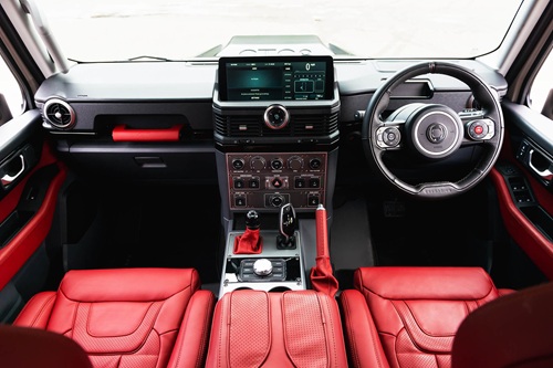 The Series II Expedition redefines the Grenadier’s utilitarian image with refined styling, superior design elements, and unparalleled comfort. This vehicle has exclusive exterior enhancements, RS-Forged deep concave wheels, a suspension lift, 37-inch tyres, and a bespoke Italian Nappa leather interior, and is built to conquer any environment with style and power. More than just a Grenadier, this transformation creates a dominant force, ready for any adventure while commanding attention at every turn.